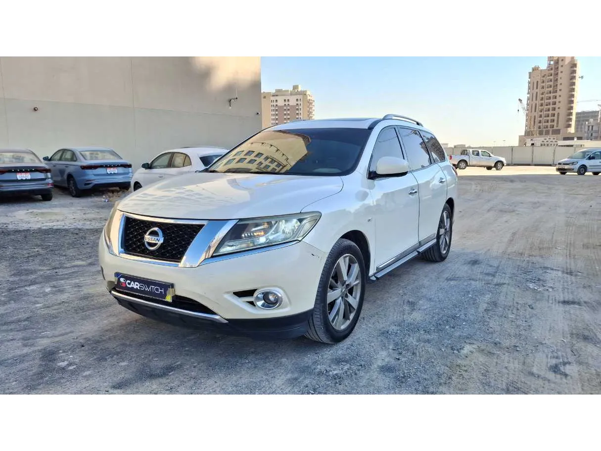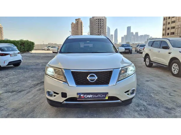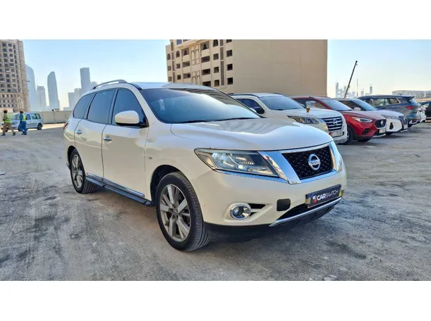 Nissan Pathfinder SL single owned company maintained abudhabi number plate, pearl white leather seat beige interior Bose sounsystem, model 2016 ran 142k, with full service history and all the original accessories with bit of scratches here Thankyou